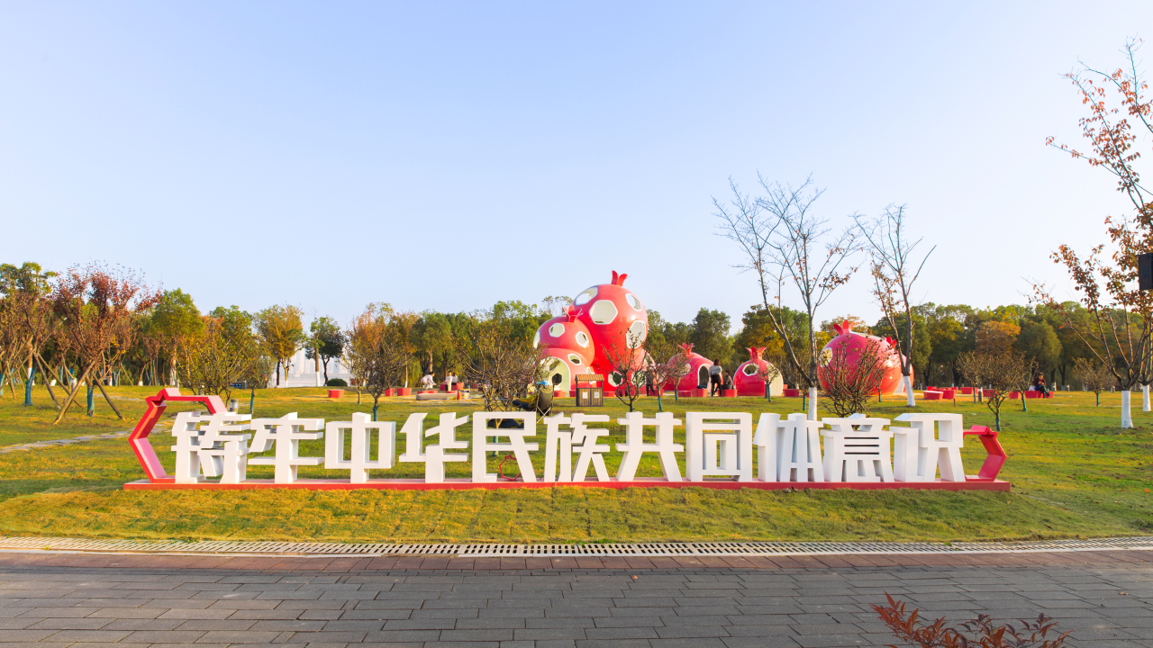 汉口江滩公园“铸牢中华民族共同体意识”主题园区“江岸石榴红”