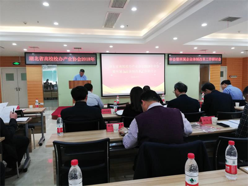 2019年4月11日下午,湖北省高校校办产业协会2018年年会暨所属企业体制改革工作研讨会召开,文化公司作为湖北省高校校办产业协会理事会员单位获邀参会,武汉大学、华中科技大学等教育部及湖北省18所高校资产公司的党政主要负责人、财务负责人共60余人出席会议,我省高校校办产业代表齐聚一堂。