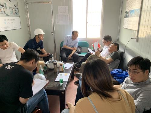 ok138太阳集团监管班子在施工现场按照工程时间进度表对工程完成情况进行核对。针对近期的雷雨天气,提醒现场工作人员及时进行电力检查。重点强调现场要及时清理工程垃圾,用良好的工程施工面貌迎接武汉军运会的召开。